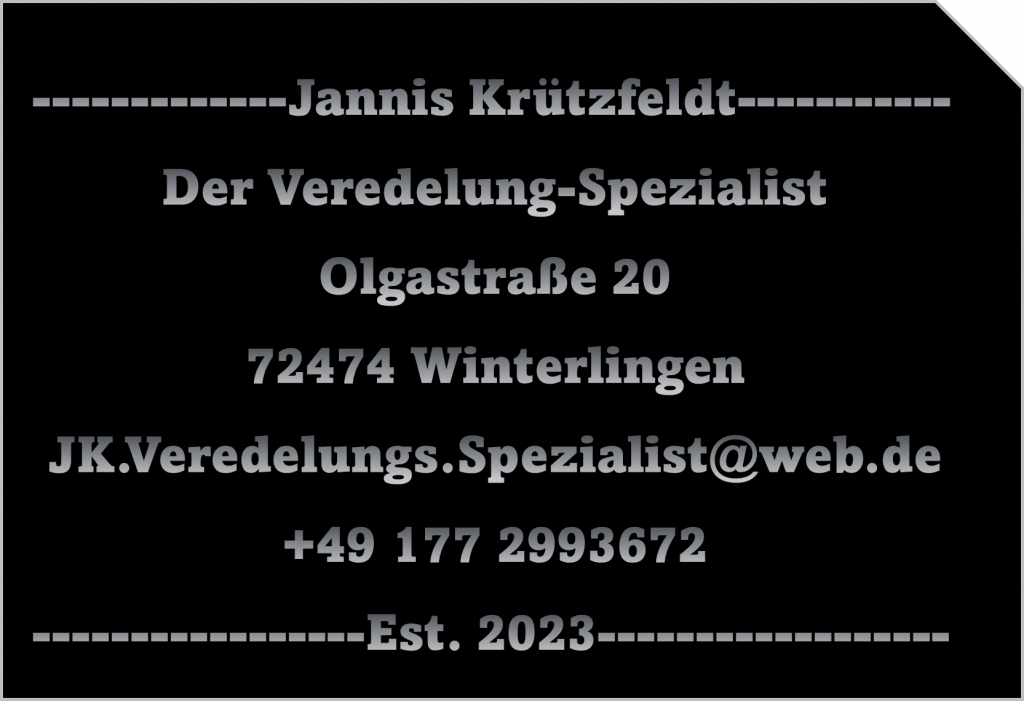 Mein Name ist Jannis Krützfeldt, bin ausgelernter Galvaniseur (Oberflächenbeschichter) und habe daran spaß Ihre Sachen zu veredeln so wie Korrosion abweisend zumachen und sie zu Verschönern.